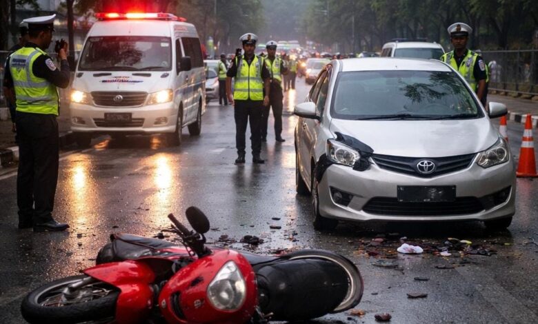 “Diduga terjadi kontak antara kedua kendaraan. Kondisi cuaca gerimis dan permukaan jalan yang licin turut memengaruhi pengendalian kendaraan,” ujar AKP Purwo.